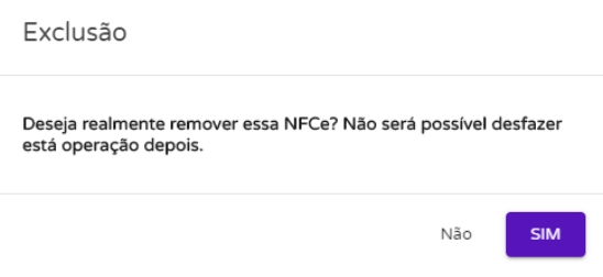 Logo, o sistema apresentará a seguinte mensagem: Deseja realmente remover essa NFCe? Não será possível desfazer está operação depois. Se desejar prosseguir, clique em Sim.
