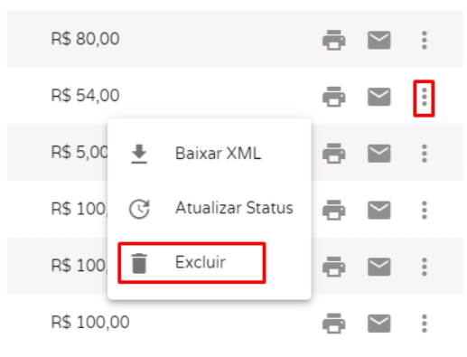 Em seguida, localize a nota desejada e clique nos três pontoslocalizados no fim das descrições de cada nota. Em seguida, selecione a opção Excluir.