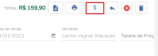 Em seguida, você precisará faturar esta venda. Para isso, clique no ícone de cifrãono canto superior direito.
