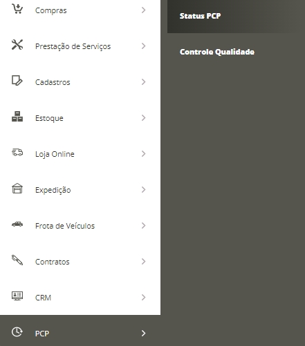 Para realizar o cadastro, precisamos acessar menu lateral PCP, submenu Status PCP e Novo.