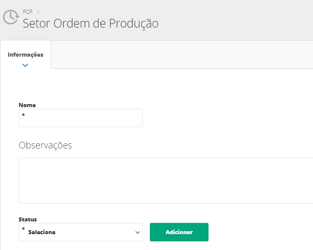Além de ser possível cadastrar Status para utilizar no Histórico de Ordens de Produção, também é possível cadastrar os Setores por onde o item produzido passará no momento da sua fabricação.