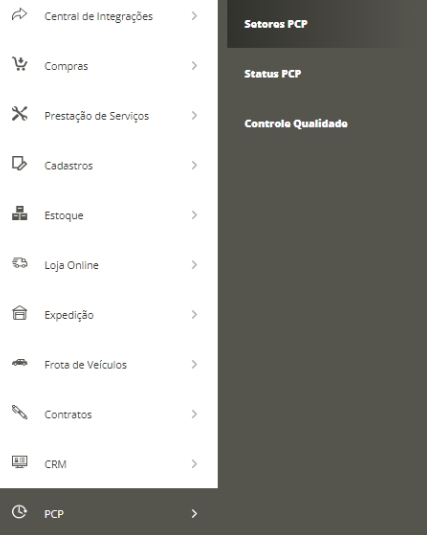 Para isso, acesse o menu lateral PCP, submenu Setores PCP e clique em Novo.