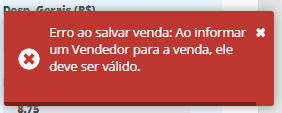 Nesse artigo abordamos o que deve ser feito se o sistema apresentar uma mensagem que o vendedor válido deve ser informado mesmo que você já tenha cadastrado essa pessoa com rótulo vendedor.