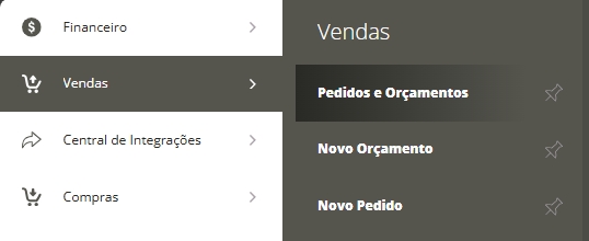 Configurado o atributo no produto para localização na tela de venda, acesse Menu Lateral Vendas e em seguida Submenu Pedido e Orçamento