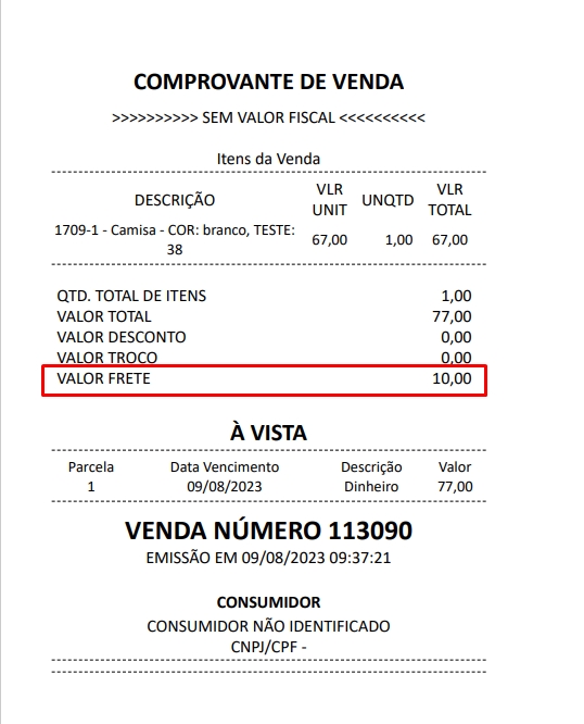 Feito isso, basta finalizar a venda. Onde o frete estará destacado em seu comprovante de venda
