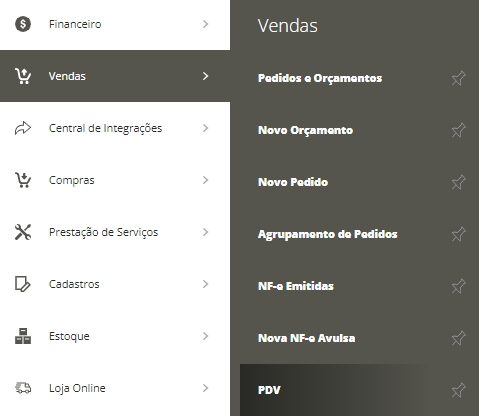 Então, acesse Menu Lateral Vendas e em seguida no SubmenuPDV