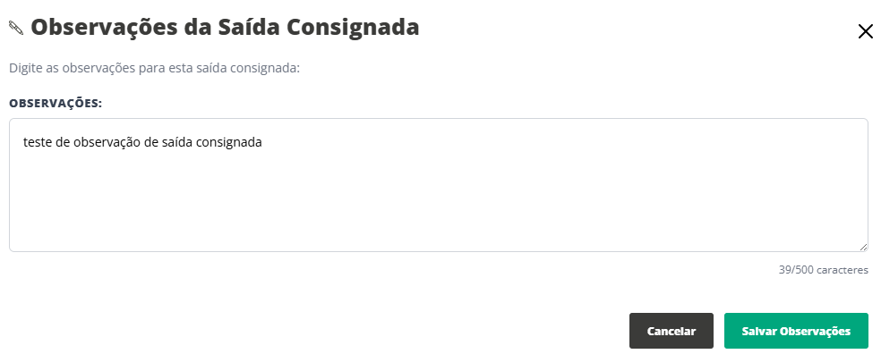 Após o preenchimento da observação, é necessário clicar em Confirmar e finalizar a saída consignada.