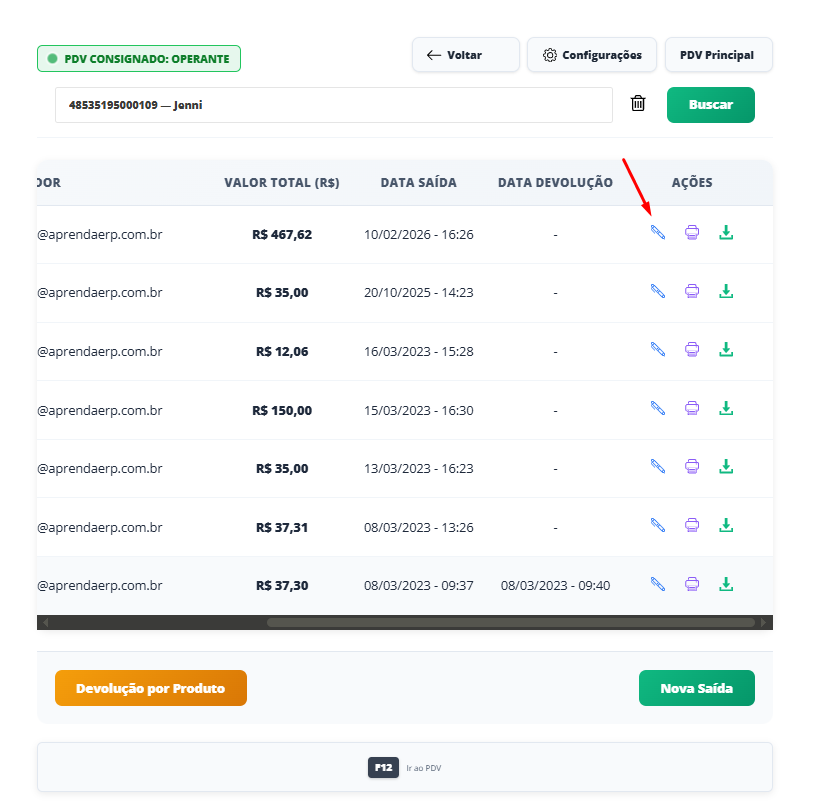 Então, essa informação ficará anexada junto a Venda consignada do cliente.