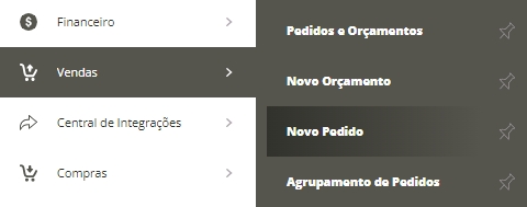 Acesse o menu lateral Vendas, submenu Novo Pedido.