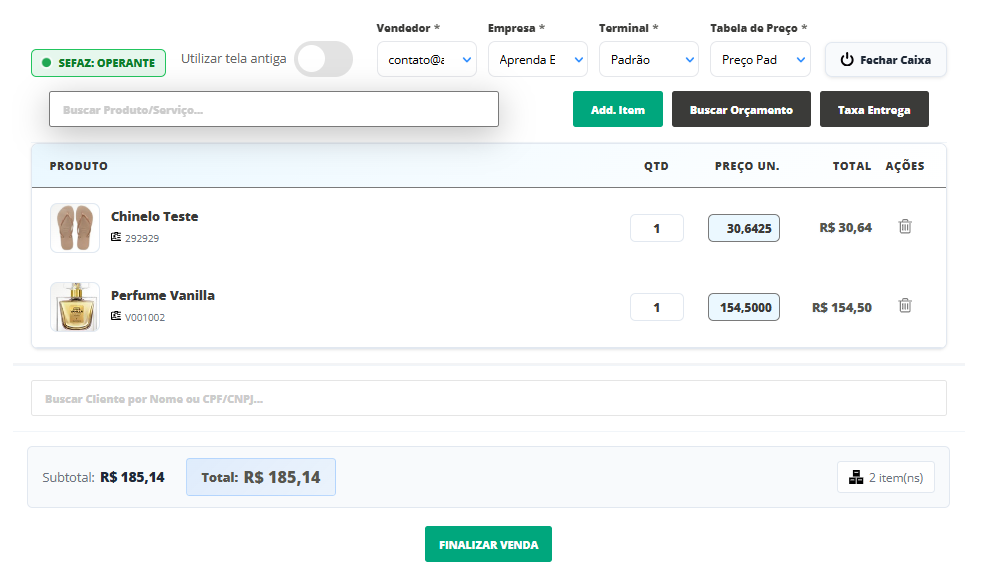 Insira os itens de sua venda na tela do PDV