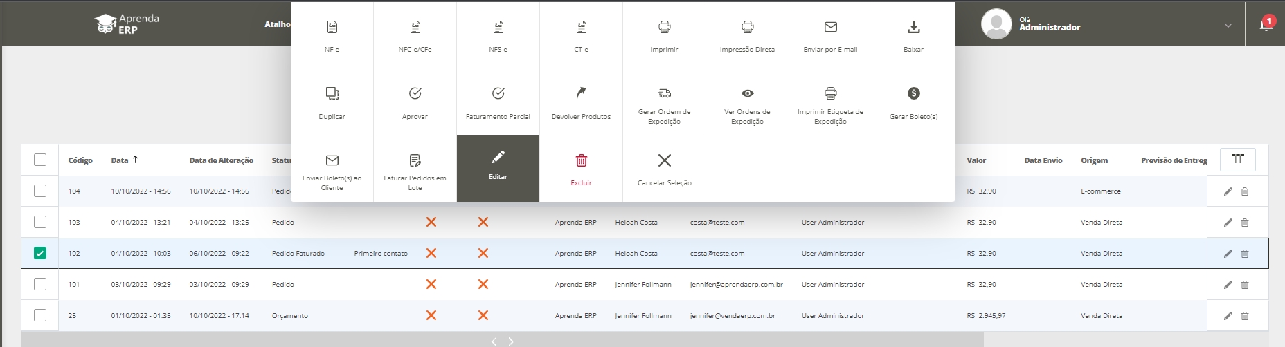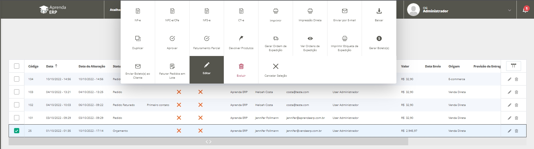 Em seguida, localize o pedido desejado e edite-o.