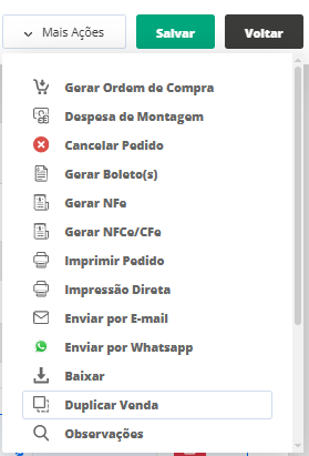 Após isso, clique no ícone informativo Mais Ações e escolha a opção Duplicar Venda.