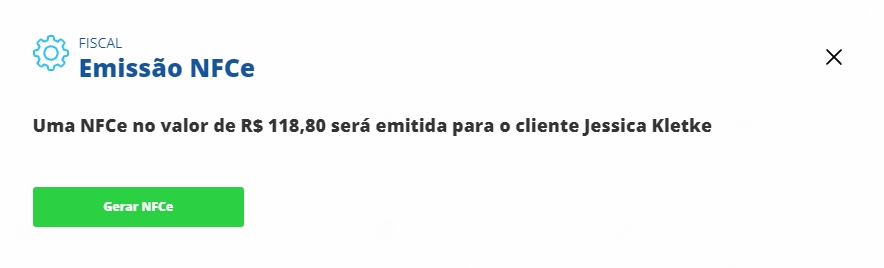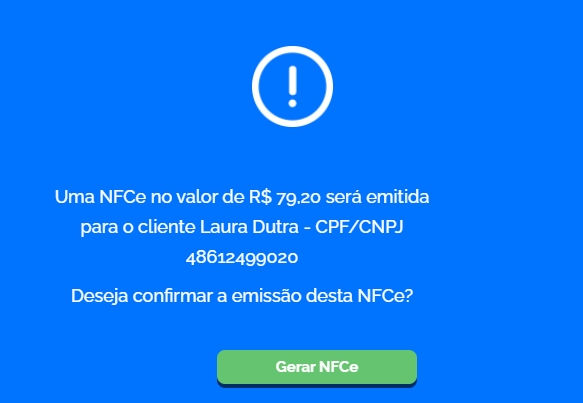 Na próxima tela, o sistema informa a NFC-e que será emitida. Clique na opção Gerar NFC-e.