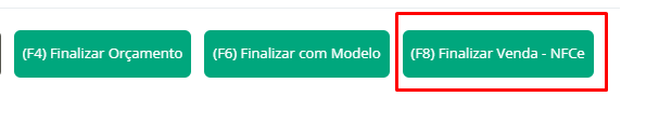 Agora, clique em Selecione Ação ou no botão F8 do seu teclado, para escolher o documento que será exibido. Clique em Finalizar Venda – Fiscal (NFC-e).