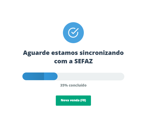 A seguir, o sistema informará que está sincronizado com a SEFAZ para o envio da NFC-e.