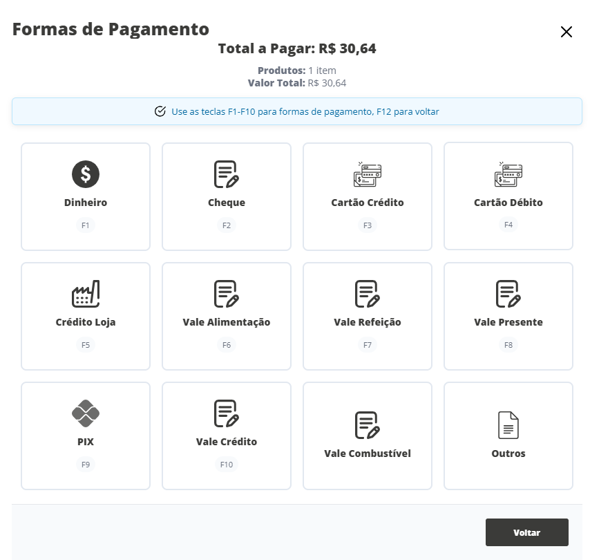 Na sequência, selecione uma forma de pagamento para a venda.