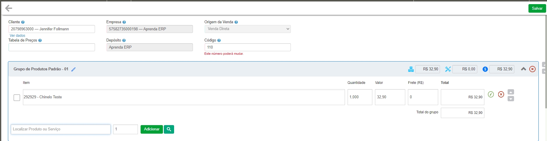 Preencha os dados de sua venda, como cliente e produtos que serão vinculados a ela.