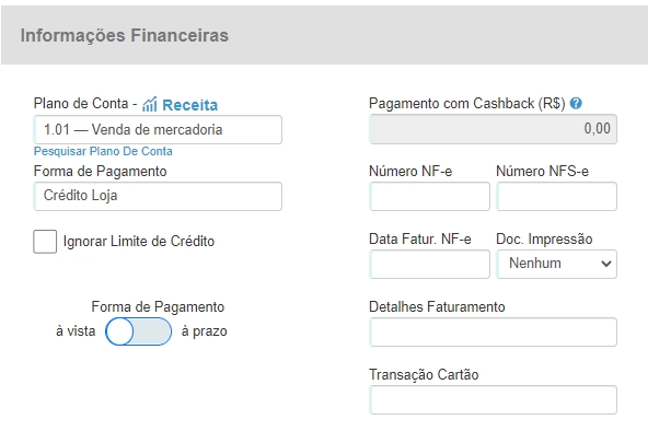 O sistema ERP permite que você fature o valor de sua mercadoria para controle em seu financeiro, sem que a venda seja finalizada. Essa funcionalidade auxilia clientes que necessitam controlar o seu financeiro, mesmo antes da venda ser concluída