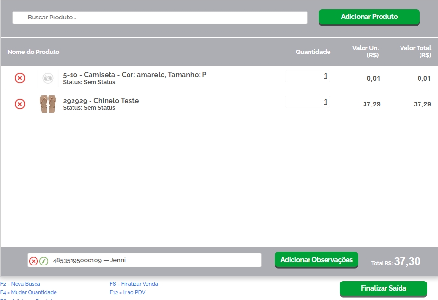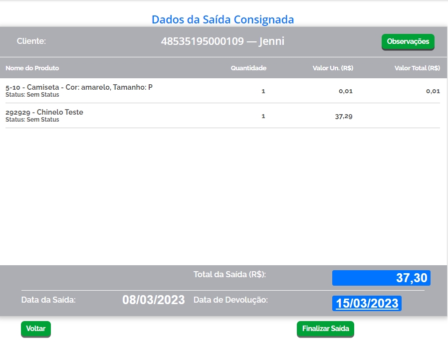 Verifique se os dados de sua venda estão corretos e clique em Finalizar Saída.