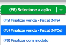 Depois disso, clique em Selecione a Ação e escolha um documento para emitir ao finalizar a venda.