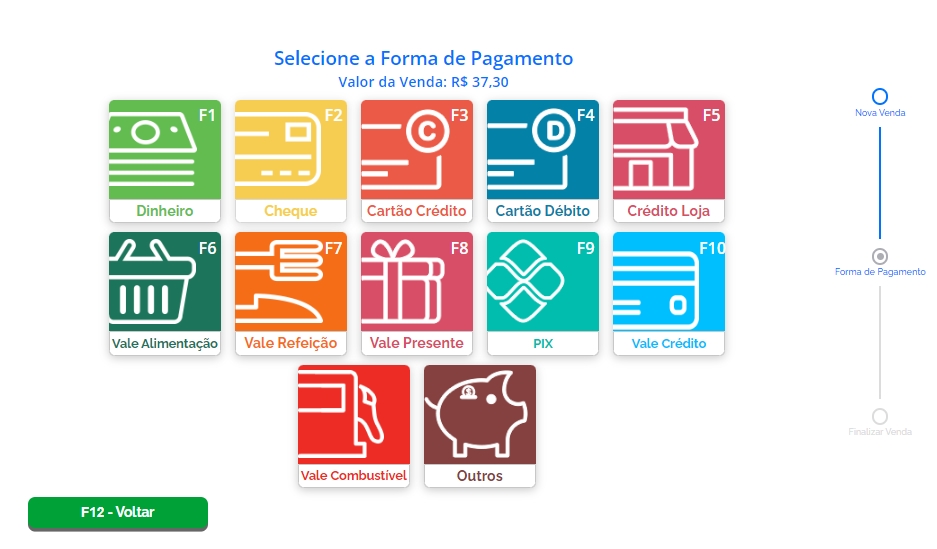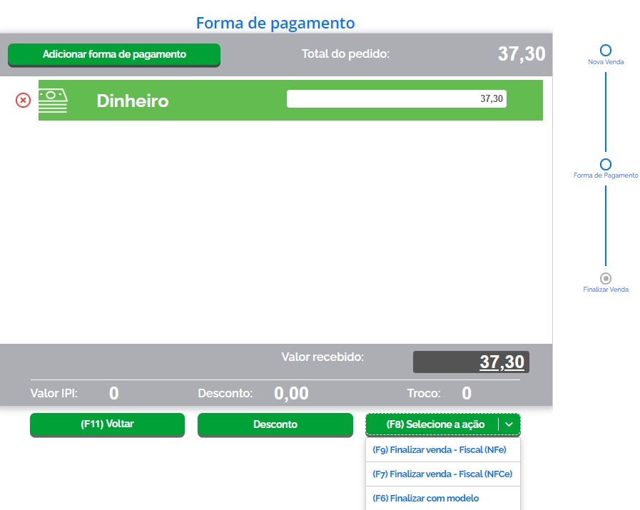 Clique em Finalizar Venda, para informar a Forma de Pagamento.