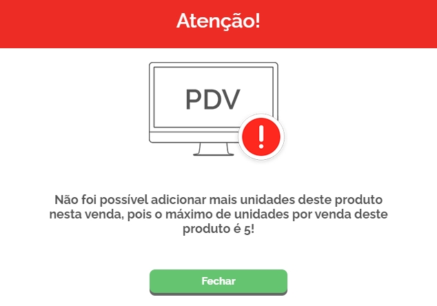 Após Salvar, ao gerar a venda e adicionar uma quantidade maior que o limite permitido, o sistema emitirá um alerta.