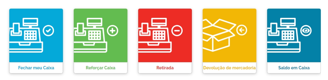 Após acessar as operações do PDV, estará disponível a você como padrão do sistema, 5 menus, sendo eles:
