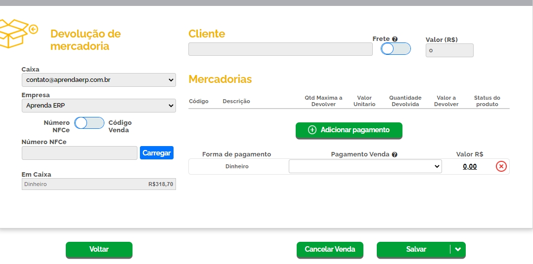 Aprenda como realizar devolução de mercadoria no ERP.