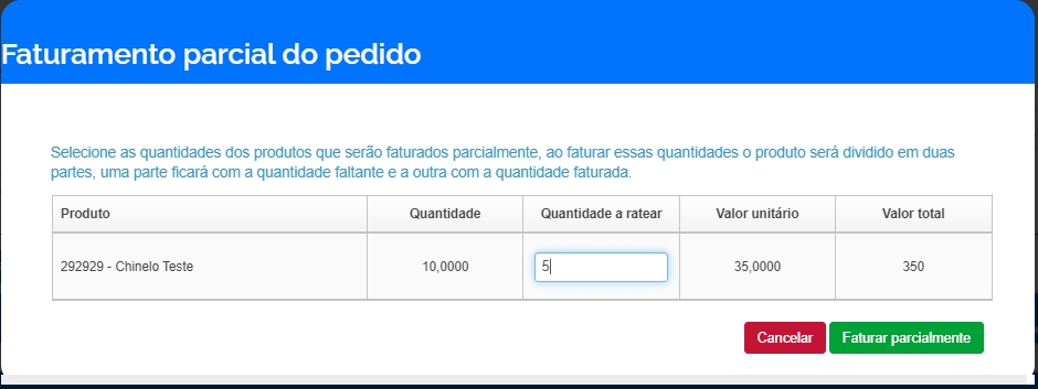 Com esta funcionalidade do sistema, será possível fazer o faturamento de uma parcela dos itens incluídos em um pedido. Deste modo, o seu estoque será movimentando, gerando novas entradas para o seu financeiro.
