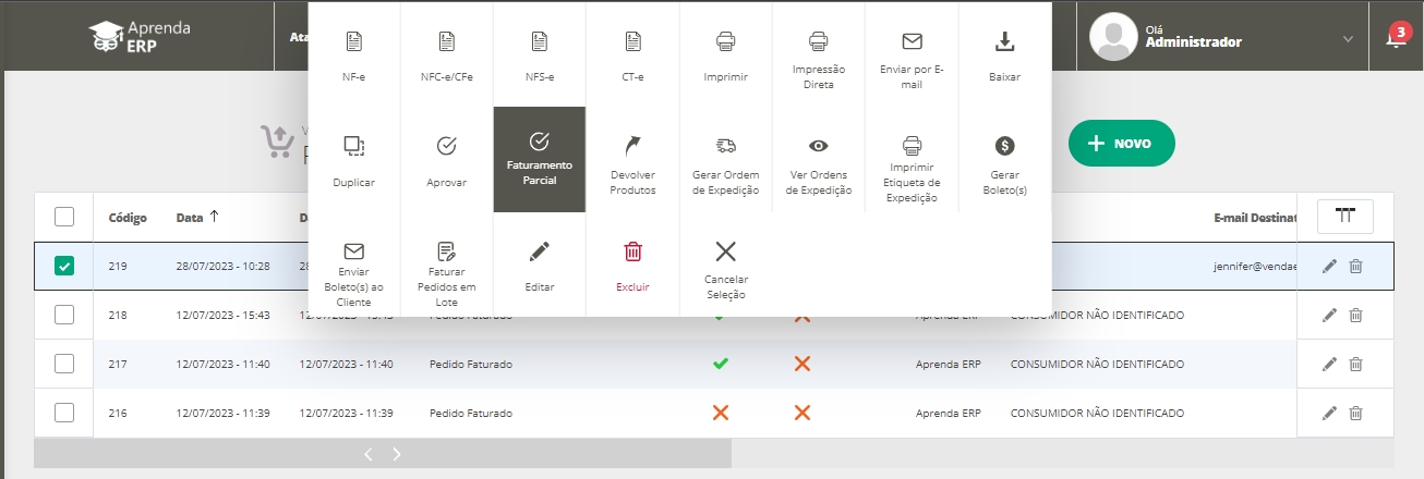 Com o Sistema ERP, de modo acessível, você e seus colaboradores poderão a qualquer momento faturar um pedido parcialmente.