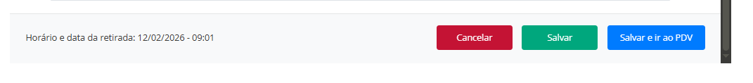 Salvar e ir ao PDV: a sua operação será salva e o sistema fará o redirecionamento para o seu PDV. Com a tela do seu PDV disponível, você pode continuar processando as suas vendas.