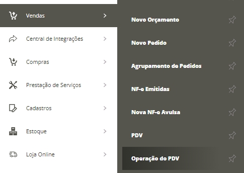 Para realizar essa ação, você vai acessar o menu lateral Vendas, e submenu Operações do PDV.