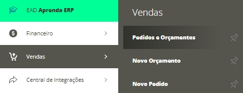 Acesse o menu lateral Vendas, submenu Pedidos e Orçamentos, em seguida clique na opção +Novo.