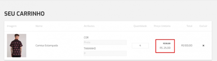 No exemplo utilizado abaixo, a venda foi realizada através do Catálogo Virtual de Produtos. Lembrando que como configuramos a promoção para as compras acima de 3 unidades, então somente ocorrerá o desconto quando o cliente comprar 4 produtos ou mais.