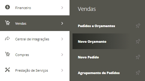 Acesse menu Lateral Vendas e em seguida Submenu Novo Orçamento
