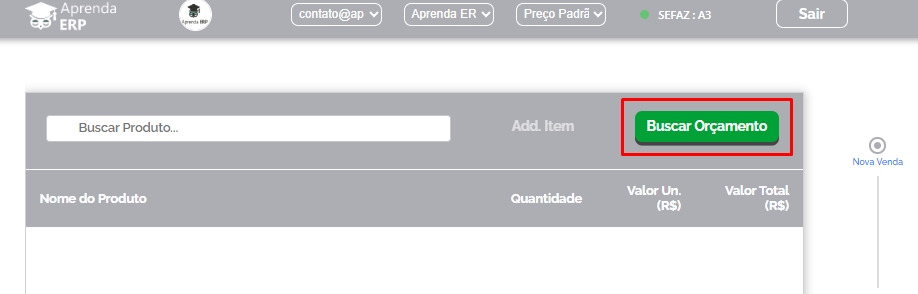 Orçamento no PDV