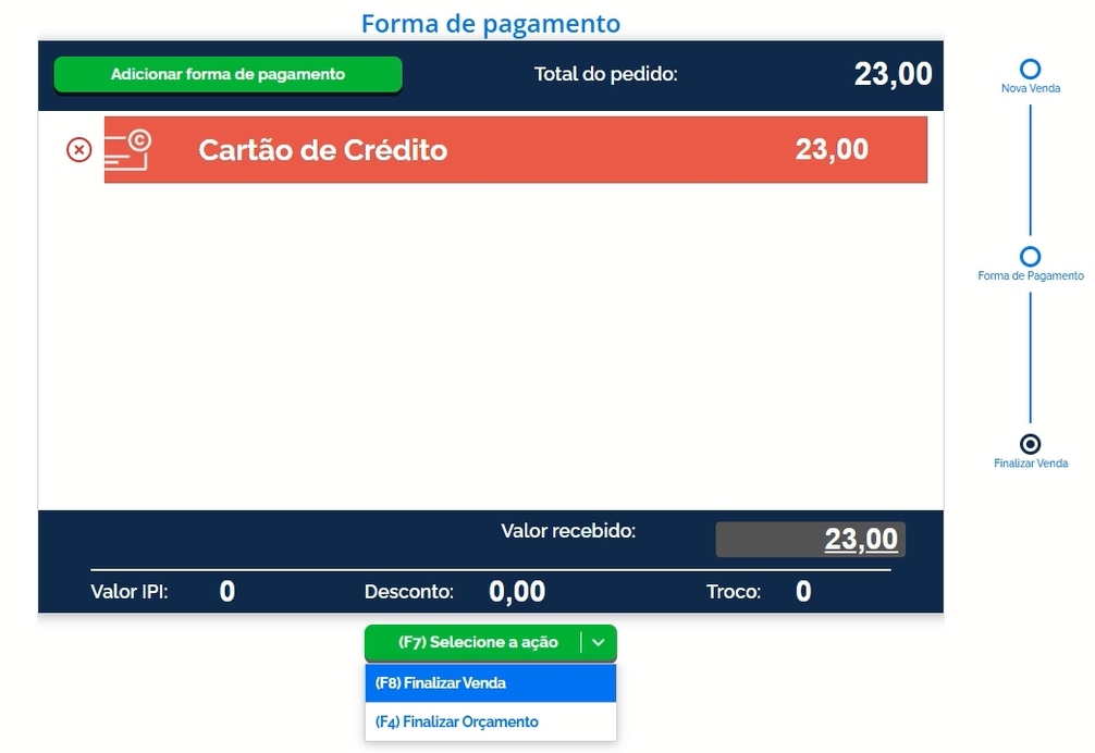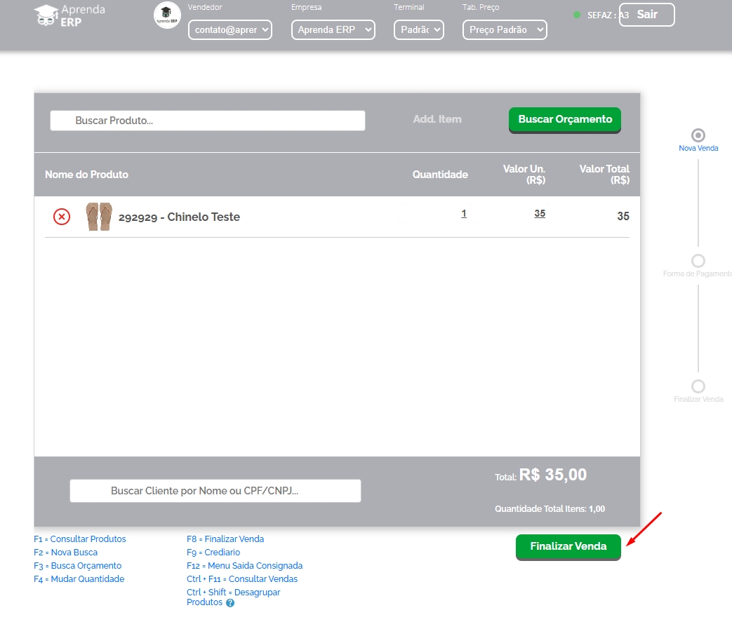 Após ter selecionado o seu Terminal, informe os itens de sua venda e clique em Finalizar Venda