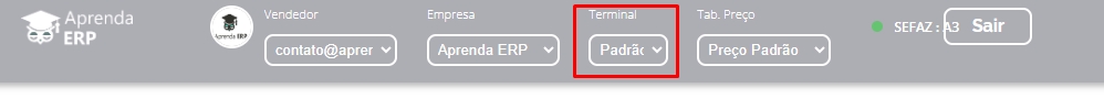 Ao acessar o PDV é possível visualizar o campo Terminal