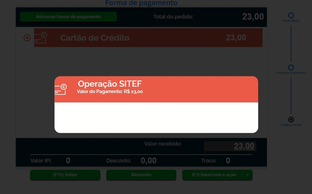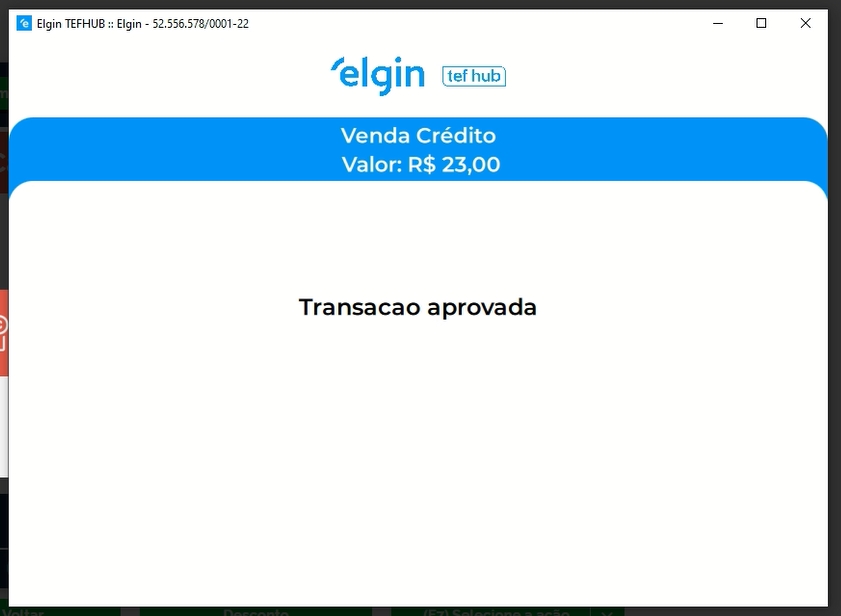 Feito isso, será apresentada a mensagem na janela do TEF, que a transição foi aprovada.