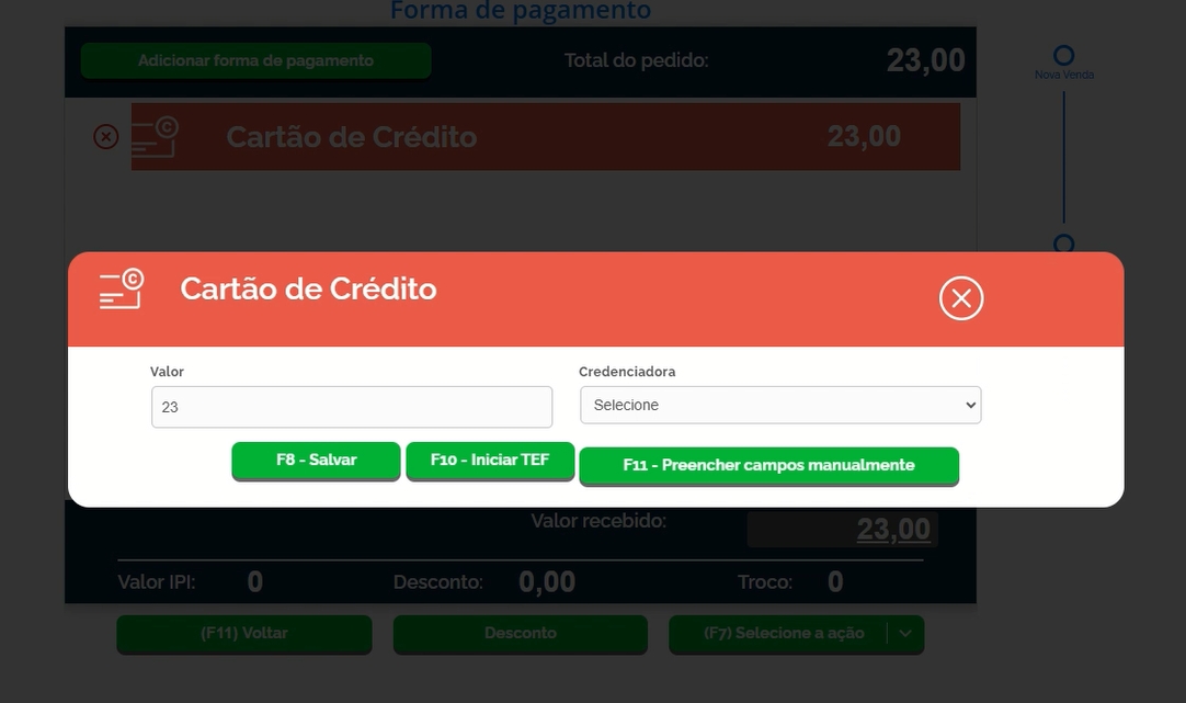 Selecione a forma de Pagamento Crédito ou Débito, onde será aberta a seguinte janela